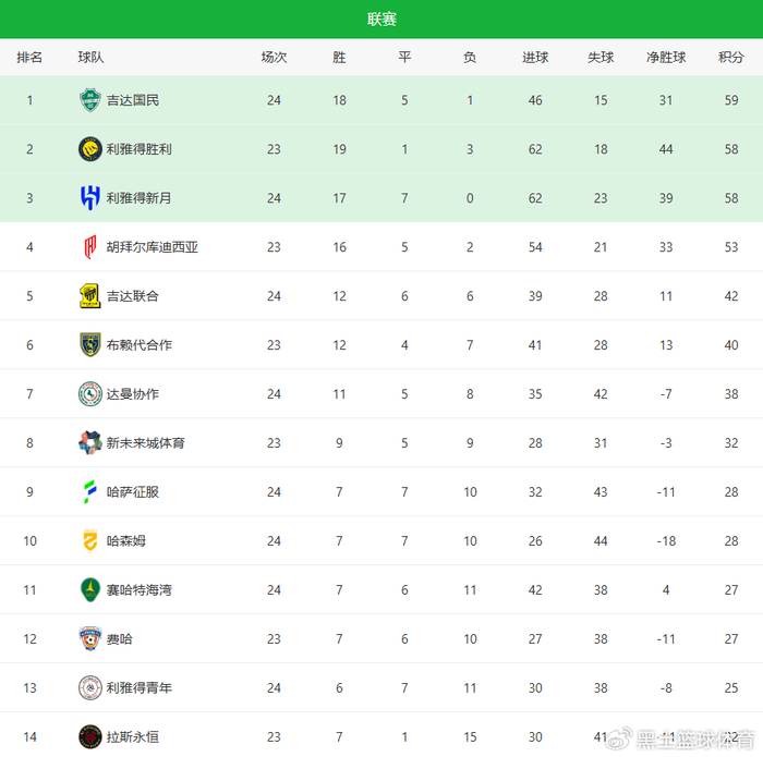 再看沙特联赛,利雅得新月客场对阵利雅得青年,双方上演了一场8球的进球盛宴。比赛一开打,双方就大打对攻战,节奏那是相当的快,卡努、库利巴利、马达什、马科斯·莱昂纳多轮番破门,再加上对手乌龙,收获5球;对面也不是善茬,3次洞穿球门,比赛过程那是相当的刺激,最终小因扎吉笑到最后,5-3拿下对手,积分也上升到了58分,仅落后榜首的吉达国民1分,与利雅得胜利同分。三强缠斗,冠军悬念被彻底点燃。
